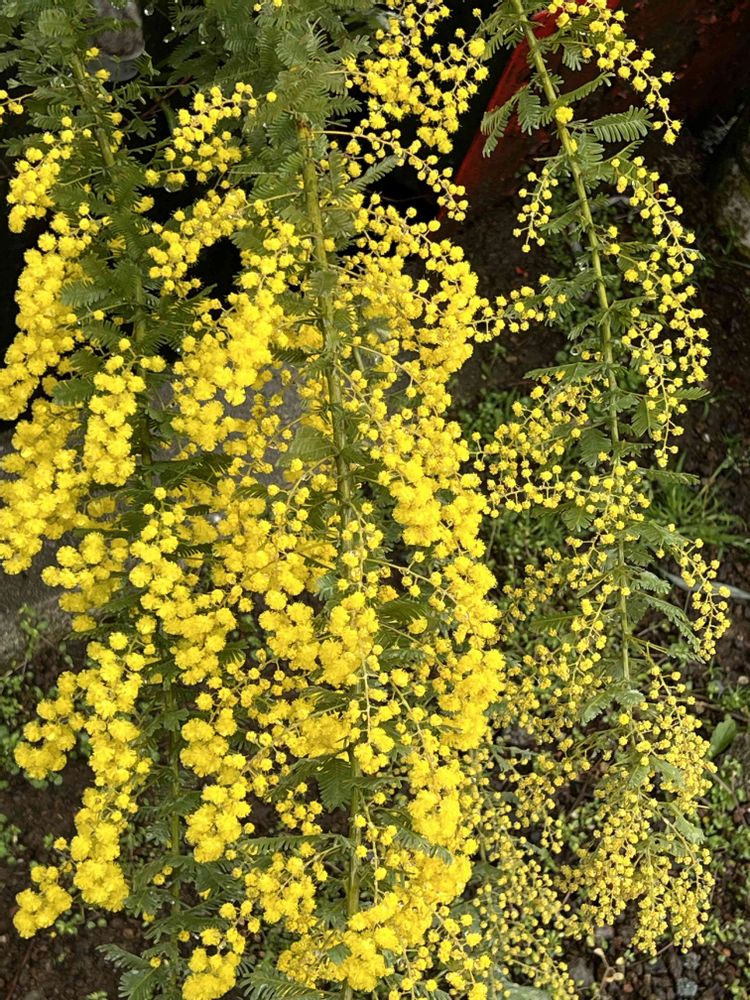 我が家のミモザが雨上がりにほぼ満開です🌼