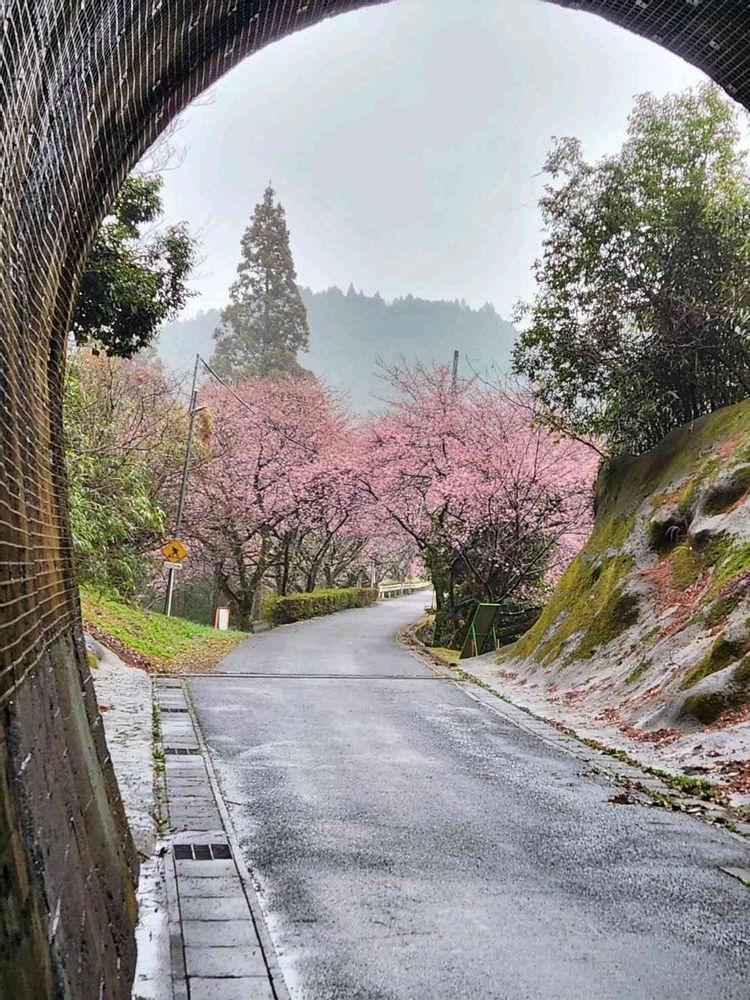 愛知県新城市長篠地区の旧田口線(鉄道跡)沿いの河津桜。🌸🌸🌸