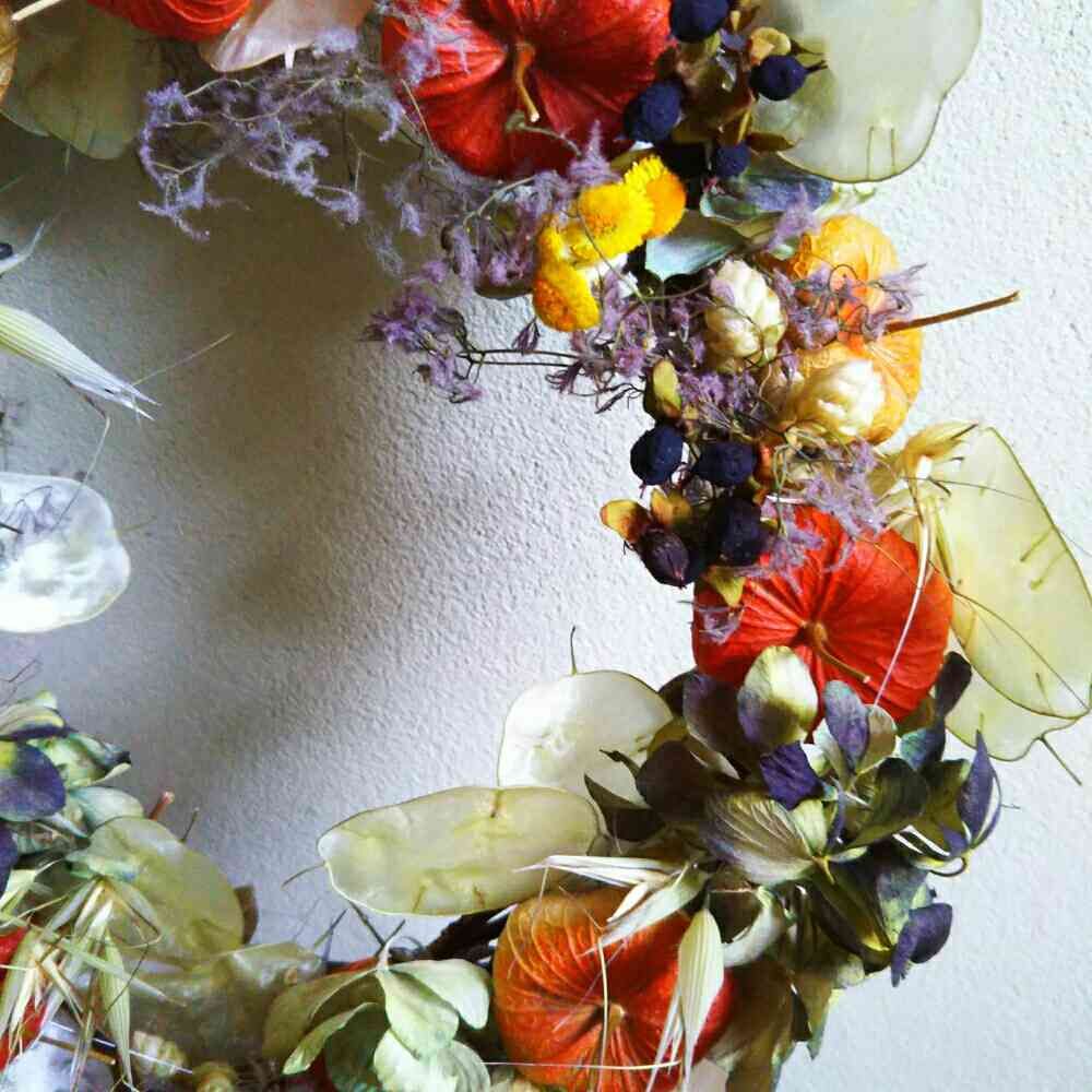 よっちゃんらしいリース、自分で集めた花材のリース、素敵❣️