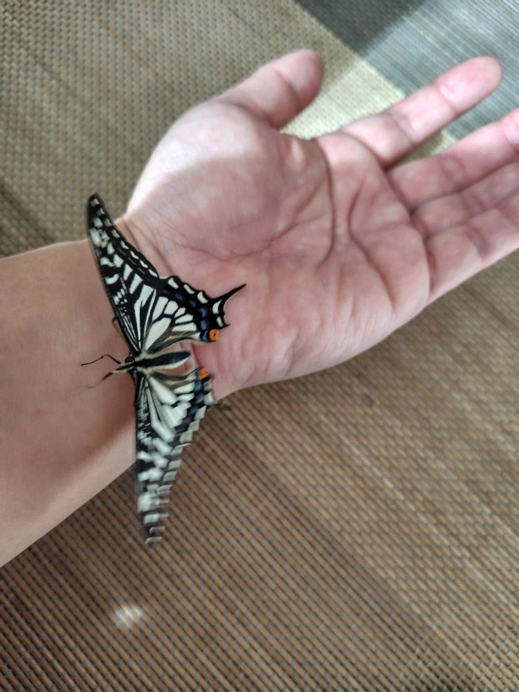 2〜4枚目と掌から登っていってついには肩乗りしてくれた(写真は撮れず)キアゲハでした😊🍀