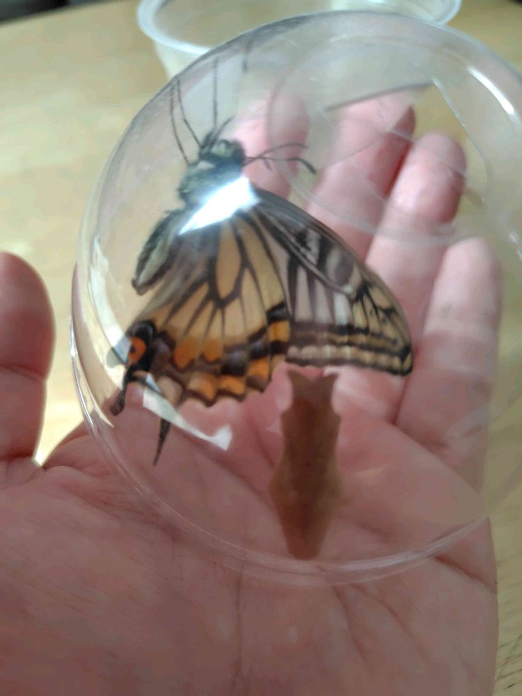 自然のものだから自然に返した方が良いんですかね〜。でもそもそも家の中で羽化させたものだから外の環境とは合ってない可能性もあり…暖かくなってからもう一度放してみます😅(ペット化してます)