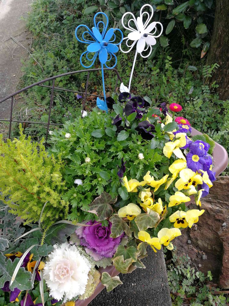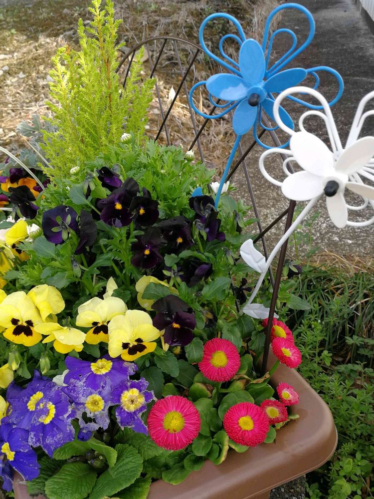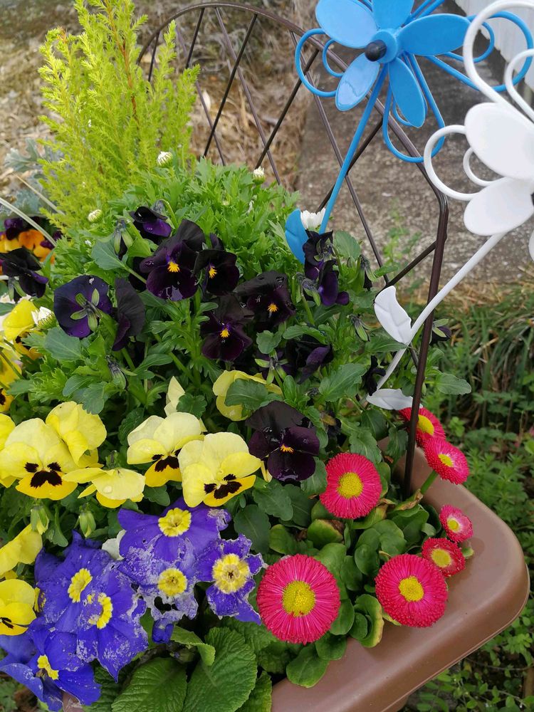 寄せ植えの端っこでも、濃いピンク色で胸張って存在感を出して咲いてます❣️