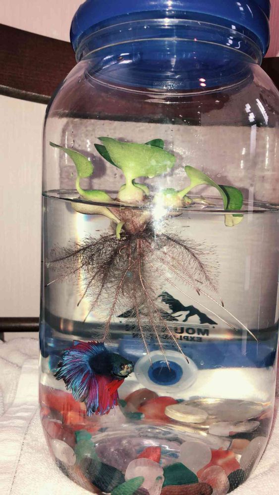 ホテイソウとベタ(青と赤なので名前は江戸川くん笑)