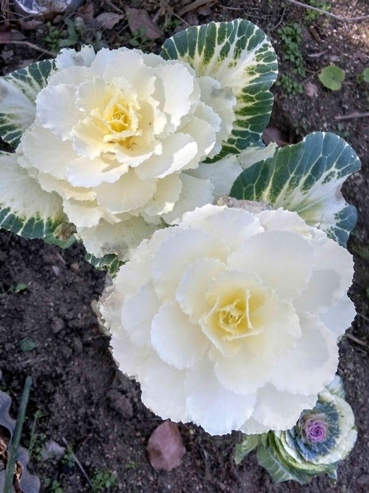 葉牡丹はまだ真っ白で綺麗ネ☘️