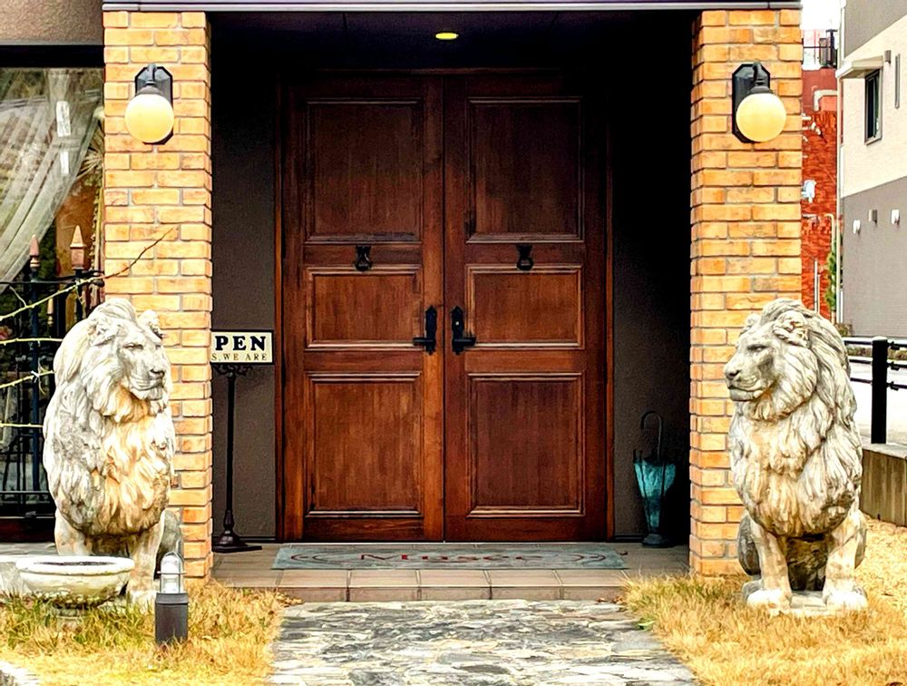 m&oさんの朝のウォーキングで,インテリアのお店みたい,入口にライオンが2頭の投稿画像