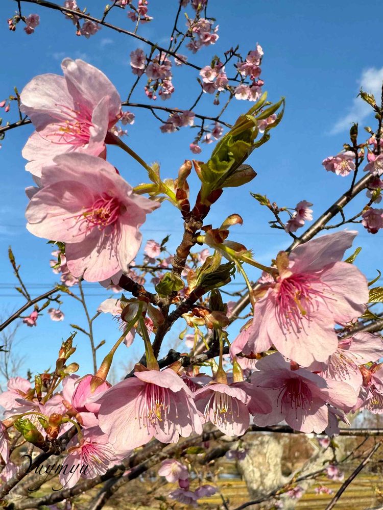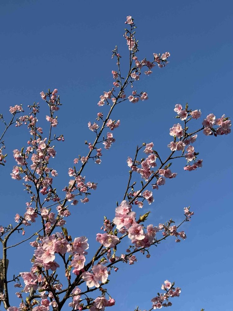 家の鉢植えの濃いピンク💗の河津桜🌸は、少しずつ開き始めていますが、下向き⬇なのであまりよく見えません。