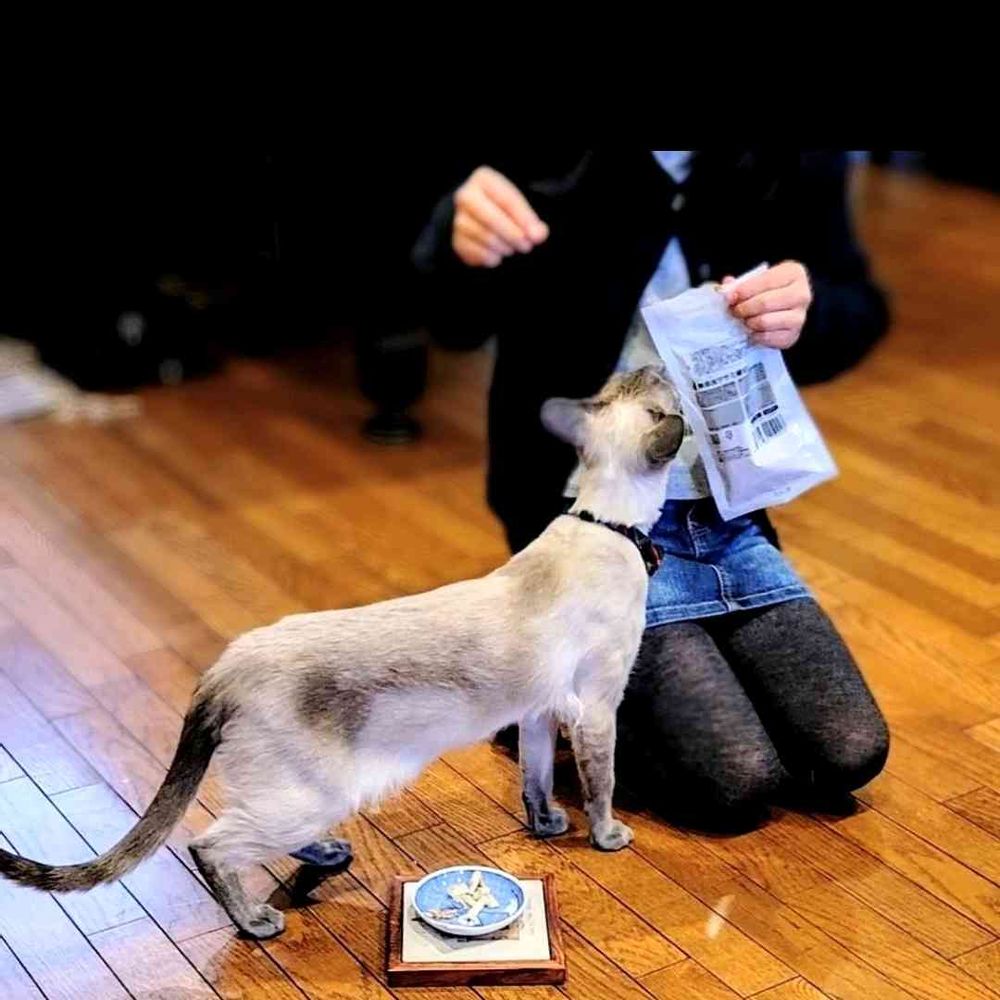 厳選ホタテと厳選ササミ2つもおやつもらったのに袋の間に座り一目散にササミの方へ~👀