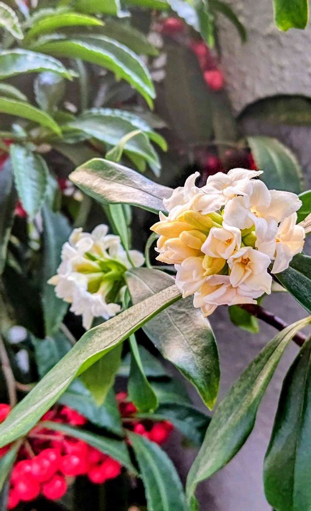 ♡春の香り漂うお庭の沈丁花のお花が、赤、白色美しく咲き揃って来ました~💫