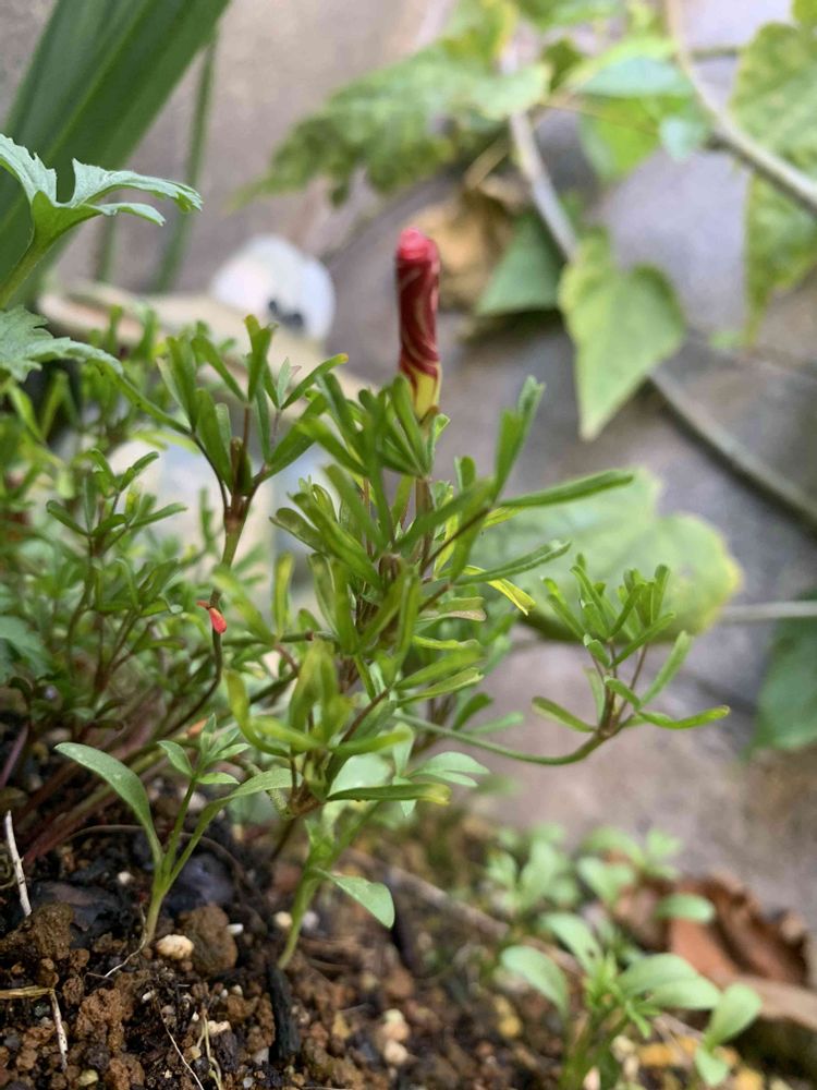 休眠中の鉢の土をうっかり庭にひっくり返して、諦めていたオキザリスが花をつけました。
