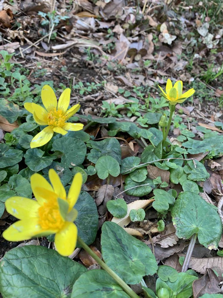 黄色はヒメリュウキンカです。教会に咲いています🌼🌼