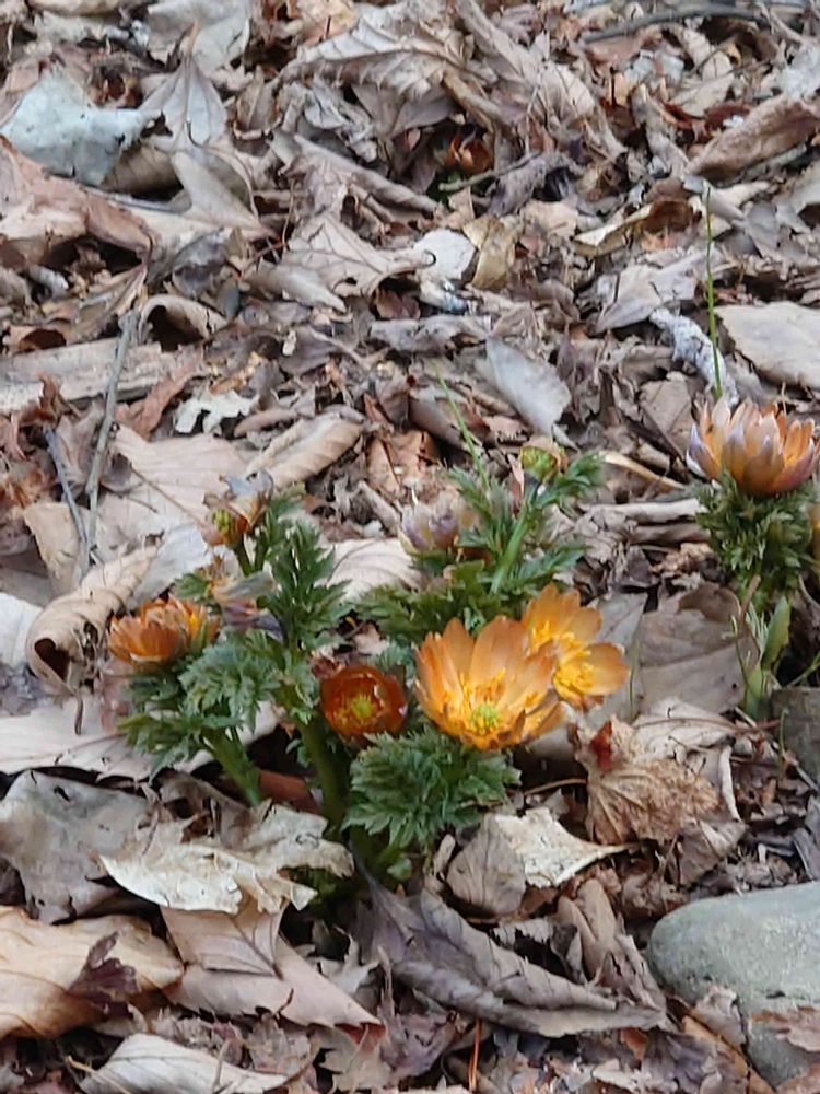 見回り中の職員さんから「あの岩のあたりにオレンジ色の福寿草が咲き始めましたよ」と秩父紅という秩父固有の品種を教えていただきました🧡