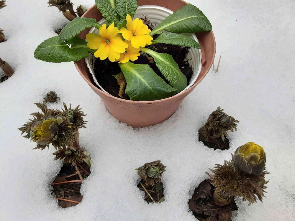 🌼福寿草が雪の中から顔だけ見せてくれ