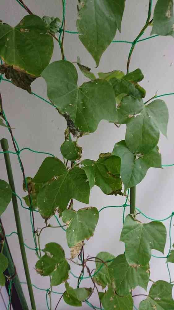 連日の強風で、アサガオの葉っぱがボロボロになってしまいました(T_T)大丈夫でしょうか?