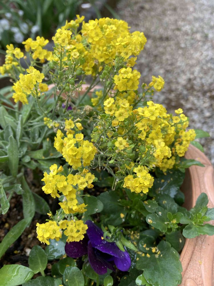 黄色のアリッサムとビオラの組み合わせ、とても春らしくて可愛いです❣️