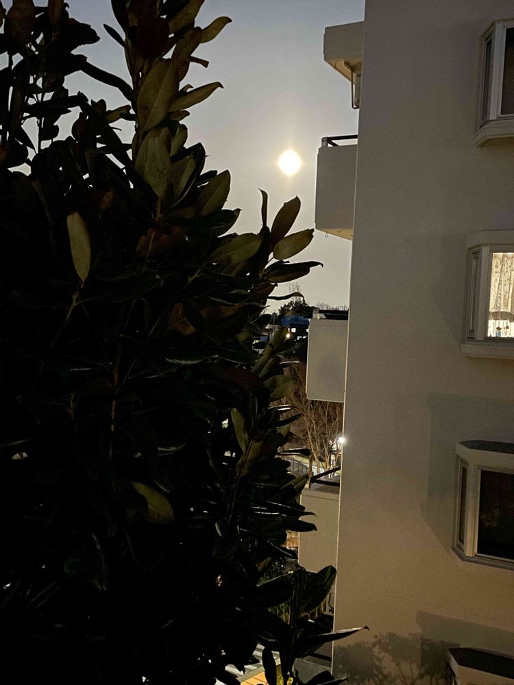 歩き終わってキッチンバルコニーから空を見上げれば雲間に満月🌕