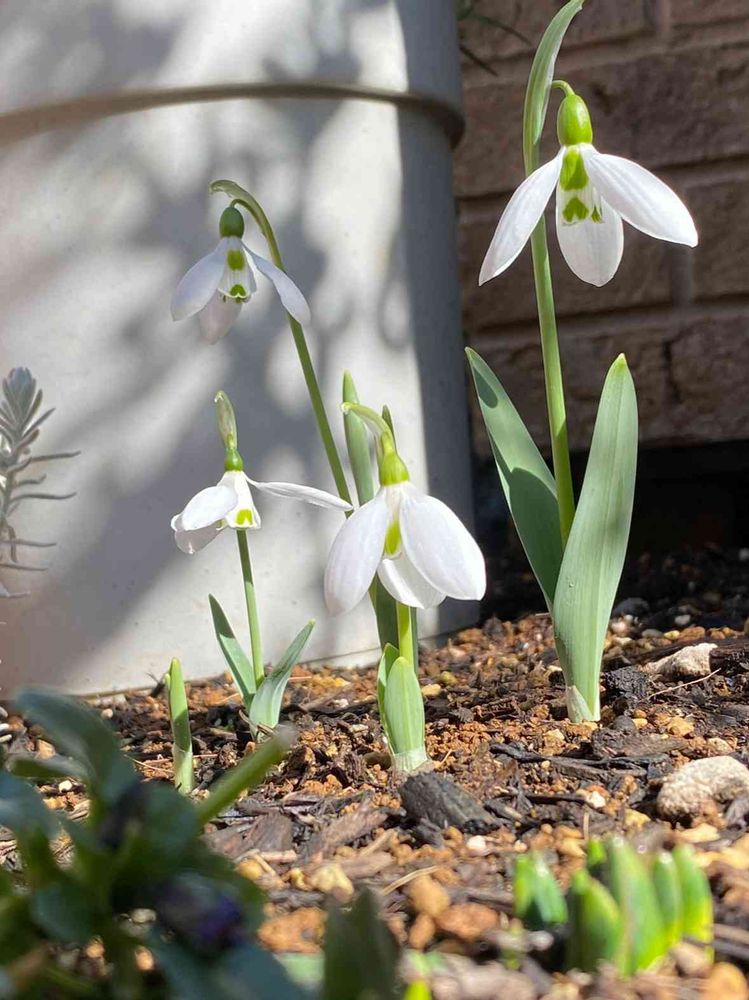 3枚めは、昨年小さな庭の花壇に球根を植えたスノードロップです。
