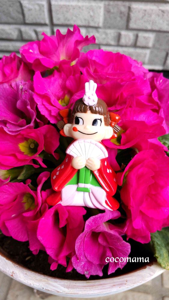 お雛様ペコちゃんには可愛いピンクのお花が似合うよね🎎