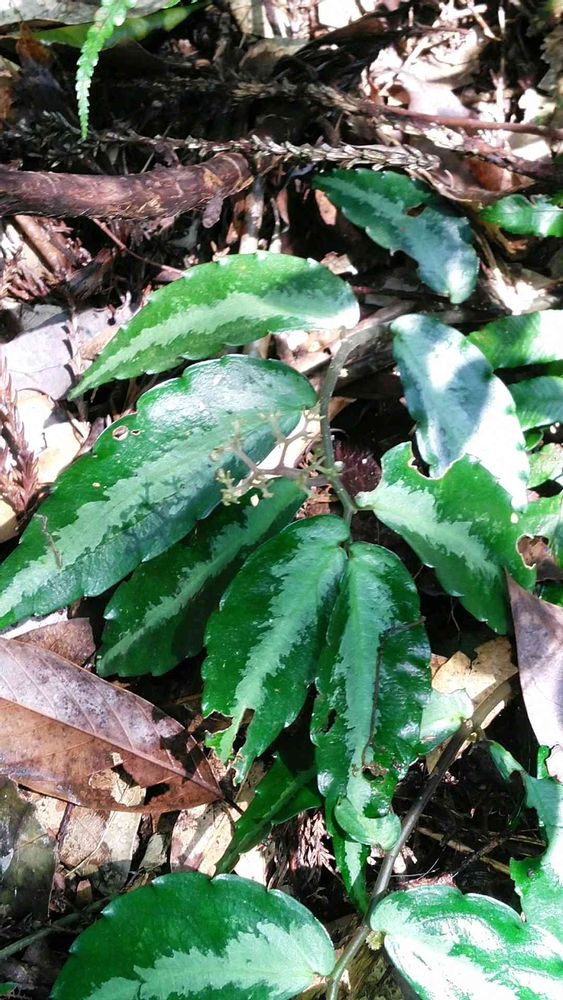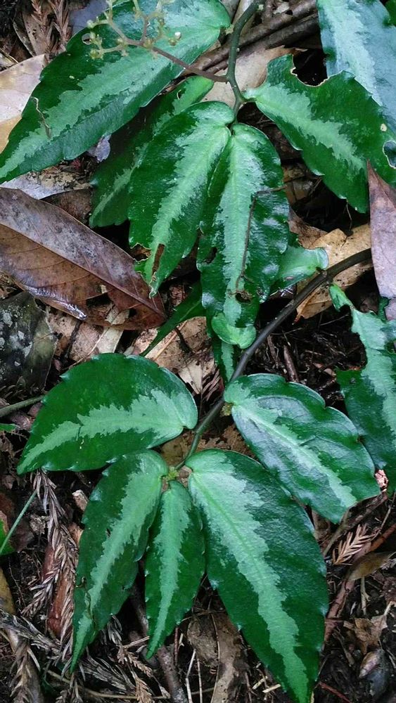 滝の近くの斜面に見たことない綺麗な葉を見つけました。🔎調べてみるとナガバサンショウソウのようです。対馬と宮崎県にだけ自生している植物らしいです。観葉植物のペリオニアの仲間のようです。