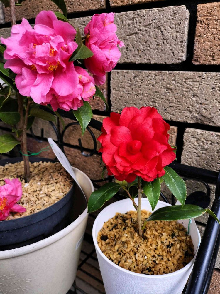 香り椿フルグラントピンクに妹が爆誕しましたw 薩摩紅(さつまくれない)という種類です。真っ赤でめちゃくちゃ美形です。