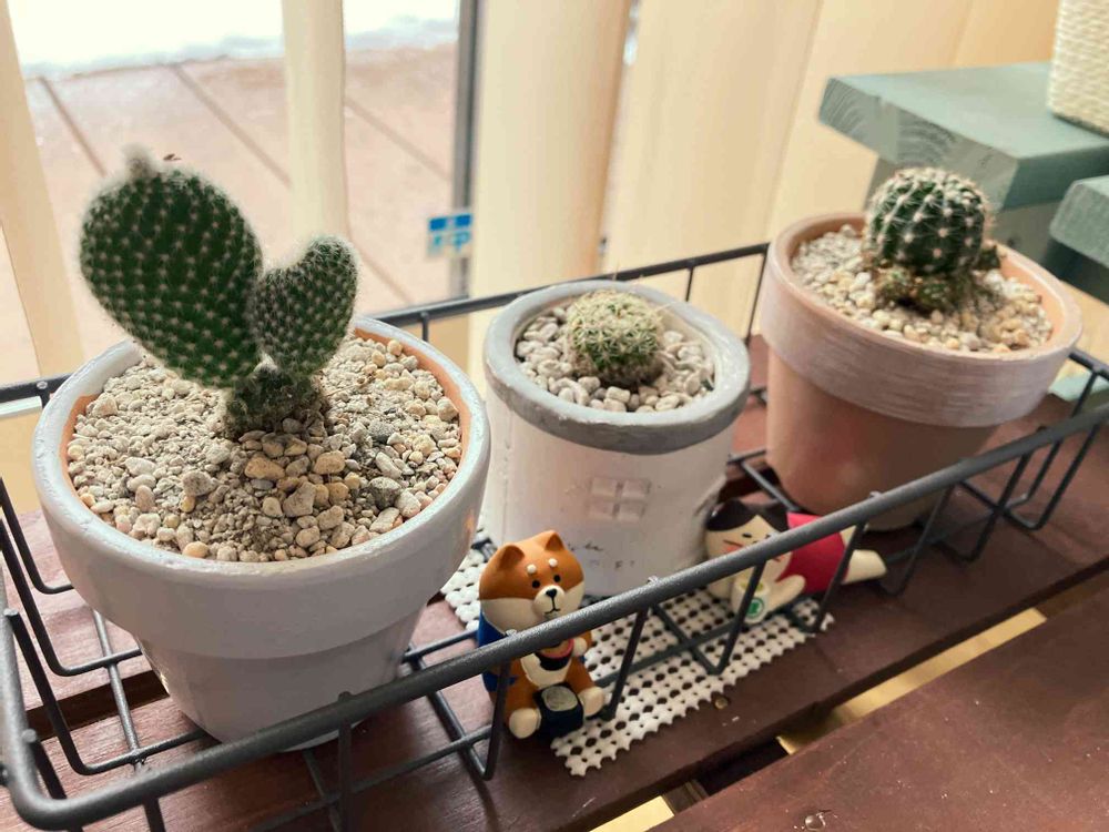 右と左は新入りです♡ 数週間前にお迎えしてずっと積みプラしてた…😬やっと前にペイントしたミニ鉢へ植え替えました
