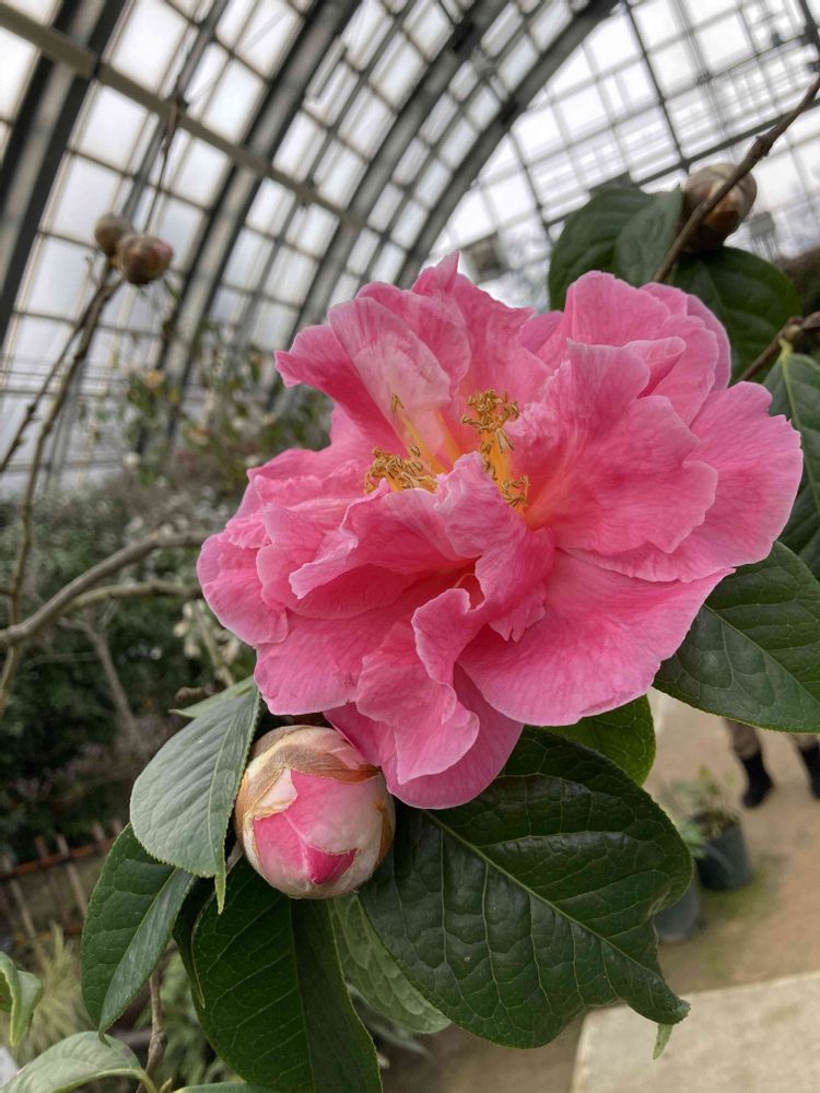 ツバキ、温室の中ですけど、咲き始めてます♪