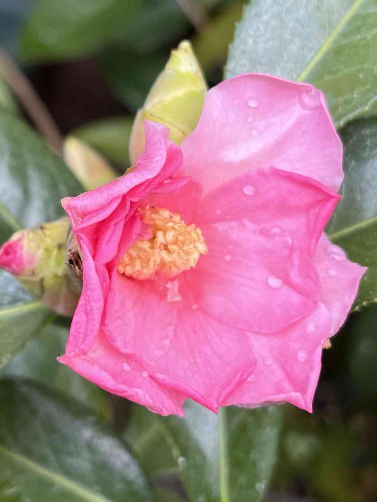椿・ラッキースターは、開花寸前に