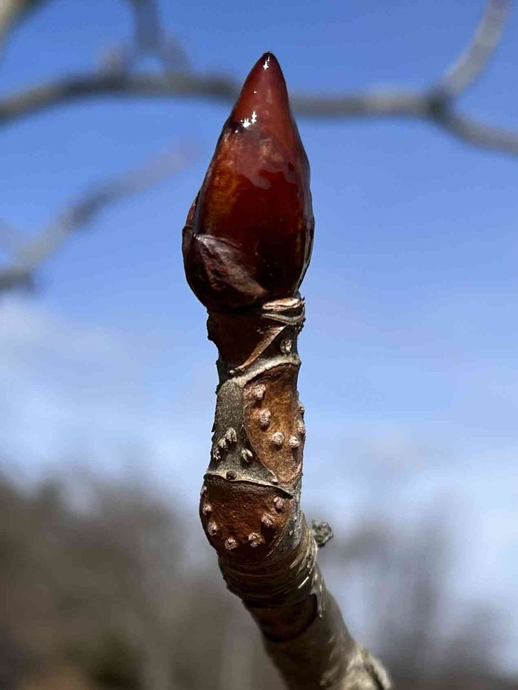 ① てらてらと飴色に光る 魅惑的な冬芽
