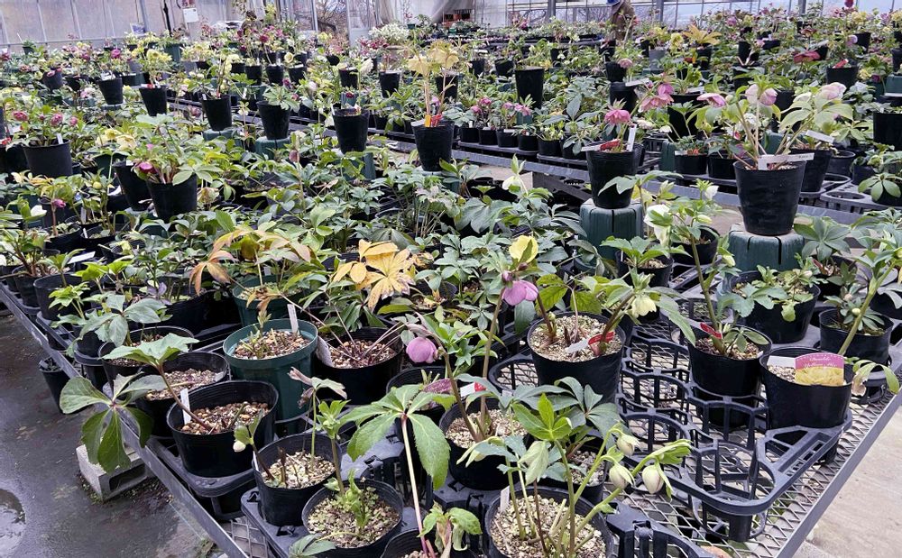 ハウスの中はほとんどがクリスマスローズです 最近はもう慣れましたが初めてこちらに来た時は数の多さに驚きましたね 気になっていたポットの場所が分からなくなってしまい探すのが大変でした