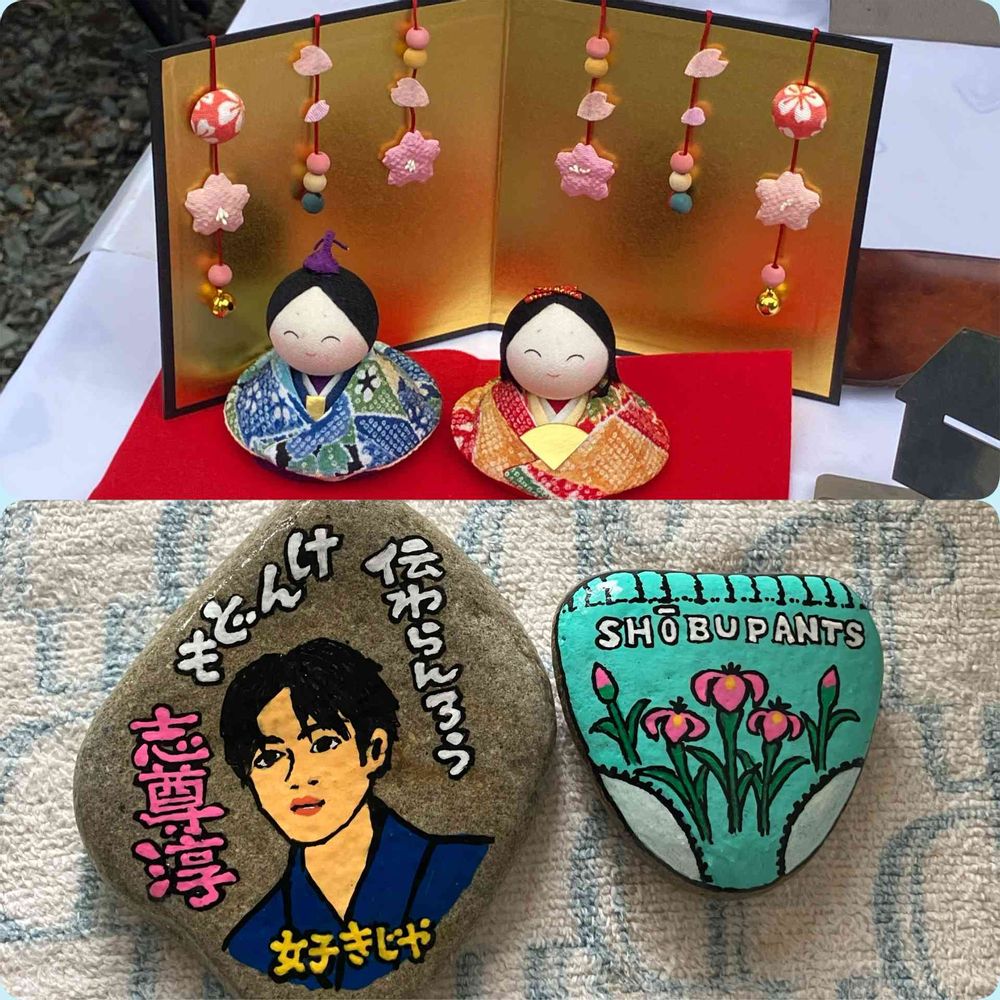 ⑤お雛様🎎と拾って来た石🪨に絵を描いて売っていました😉