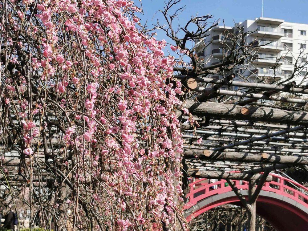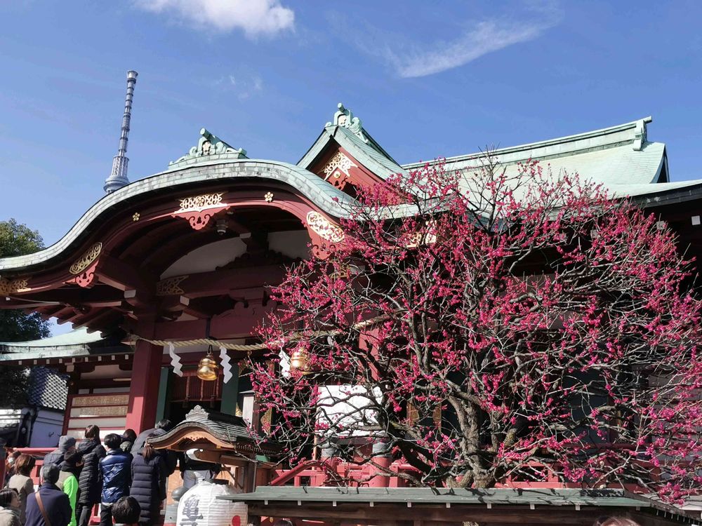 亀戸天神社に梅の花を見に行きました。土曜日でお天気だったので、たくさんの人が来ていました。
