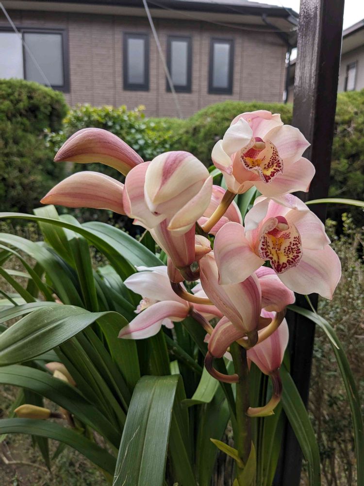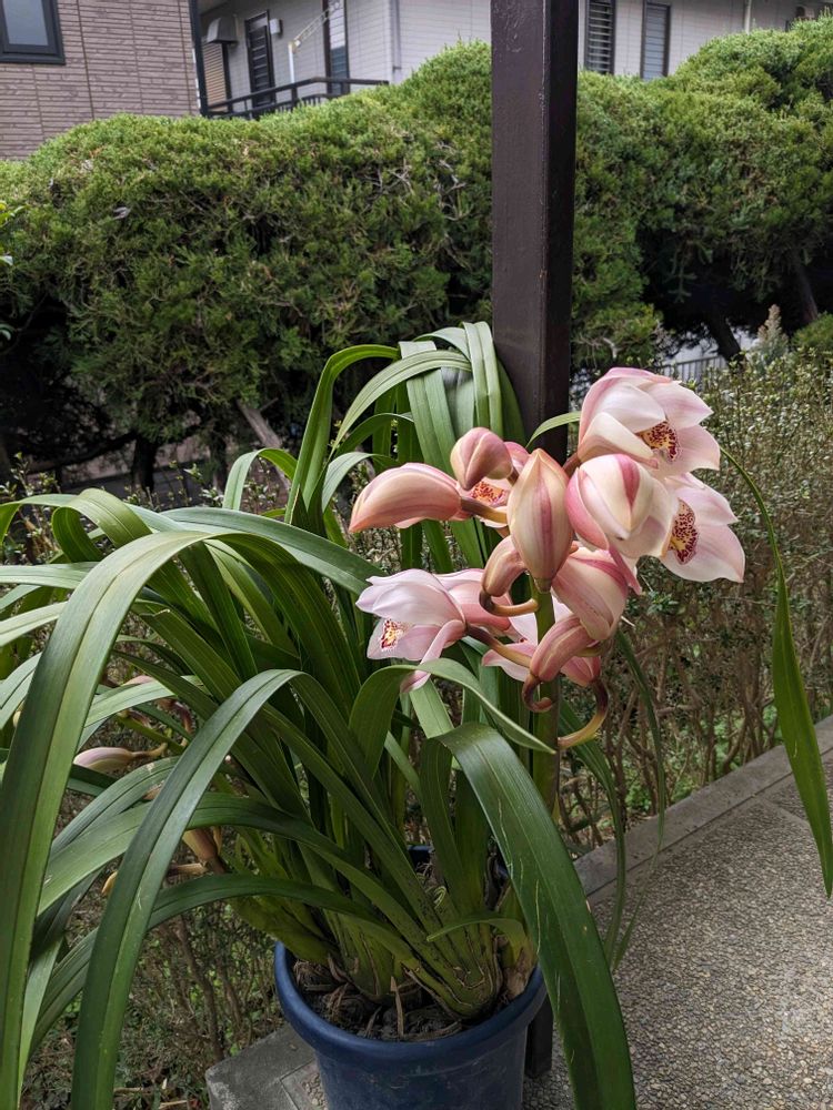 玄関では大輪シンビジウムが咲き始めているよ〜👏