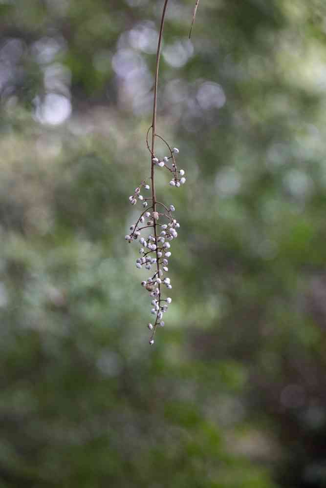 樹木から垂れ下がっていました。背丈よりやや上部に、届きそうで届かない高さ。白い果実の長さは20−30cm。