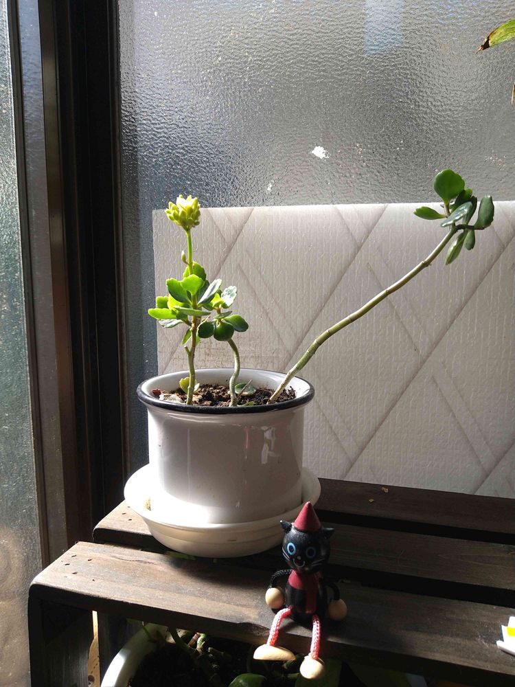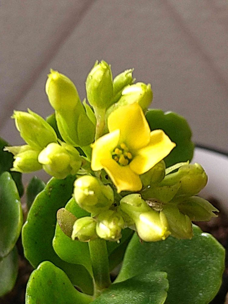今朝ブラインドを開けたら、黄色いお花が1つだけ咲いてた〜🎵5年前に義母から貰ったカランコエ😍ひょろひょろだけど、花が咲くって事は元気なんだろ〜な👍