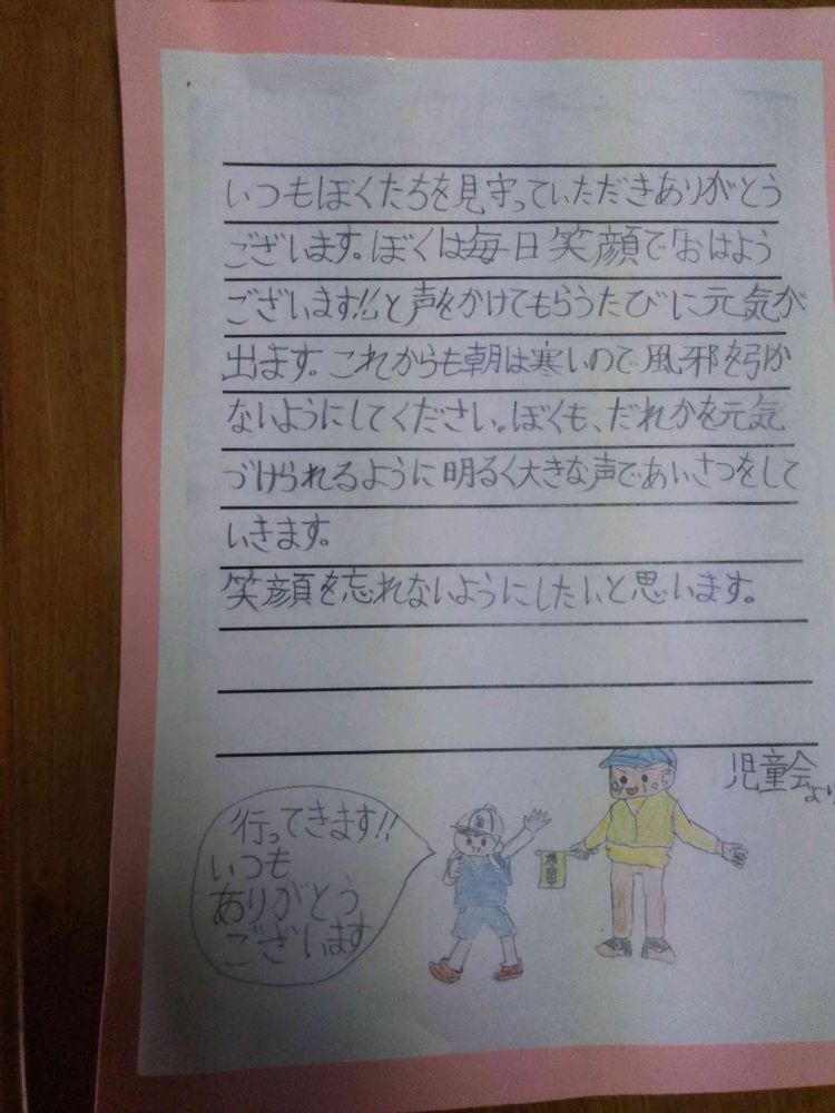 朝の見守りのお礼のお手紙。