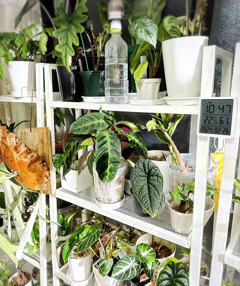 3枚目の棚の1番上にあるギザギザした葉っぱもアロカシアですか?ステキ(><)*。