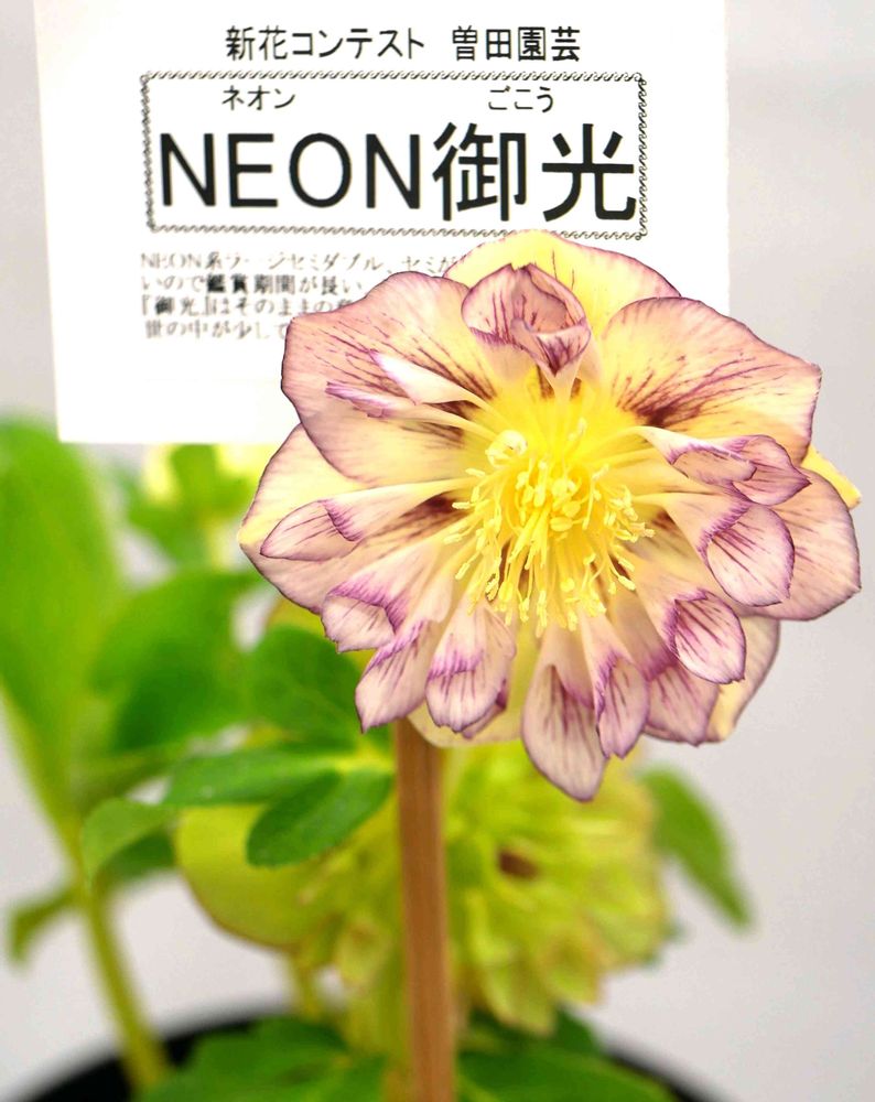 ②「黄金千寿(こがねせんじゅ)」。同じくゴールド系ラージセミダブルで多弁。ダブルとは違ったネクタリー(密線、本来の花弁)の部分の花びらの形が素敵💓