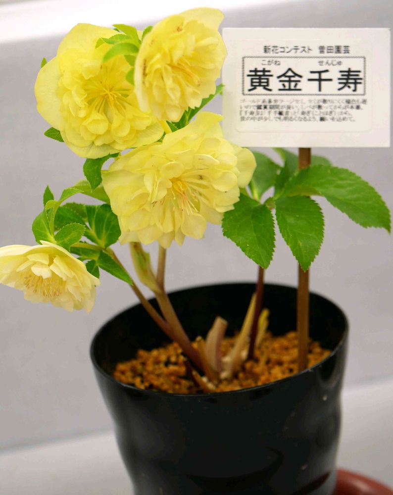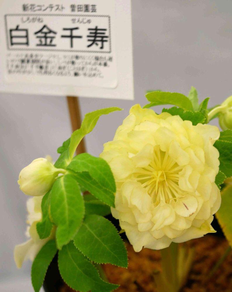 ③「白金千寿(しろがねせんじゅ)」。黄金千寿に似ていますが、白みがかった黄色でした。