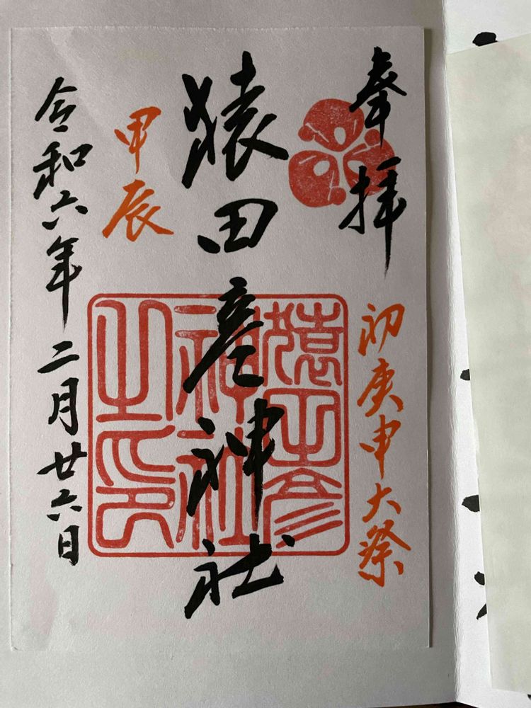 昨日は猿田彦神社の初庚申祭に行き参拝まで1時間半も並んで待ちましたが無事御朱印(初庚申祭と2番庚申祭では御朱印求める方が多くて書置きのようです)、猿面(縦9センチ×横10で博多人形師さんが作られた物で全国でも猿面があるのは博多だけ)