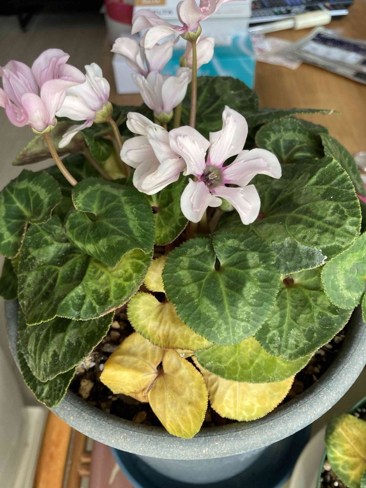 tanoのシクラメンさんも葉っぱ🌿が黄色くなります。こまめに取ってますよ😅