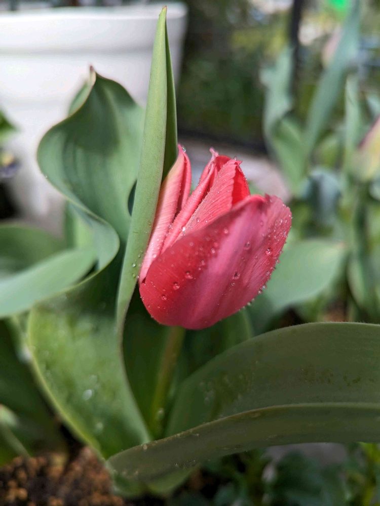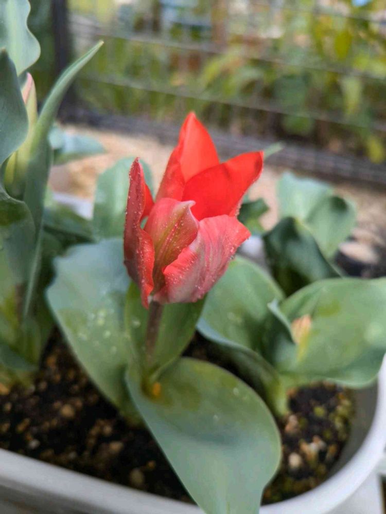 球根からのチューリップが咲いてました🌷みんな一緒に咲きますように💕