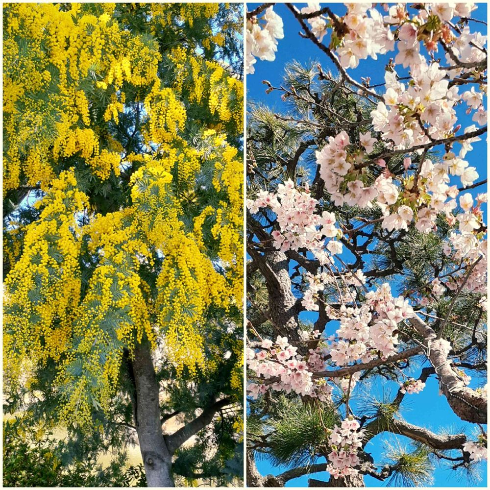 ミモザ、陽当たりの良い場所の桜🌸は満開でした