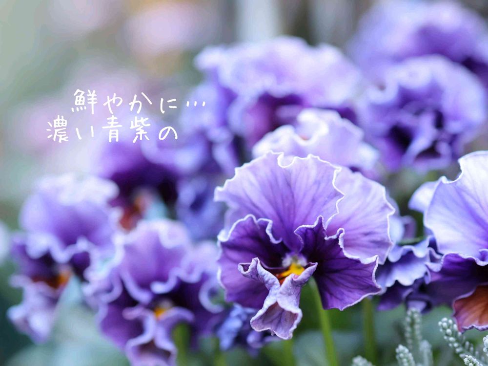 鮮やかに濃い青紫色で咲くビオラ