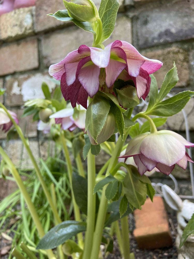 快晴〜気持ちいい日に、我が家のクリスマスローズ🥀は、たくさん蕾を付けながら開花してます。
