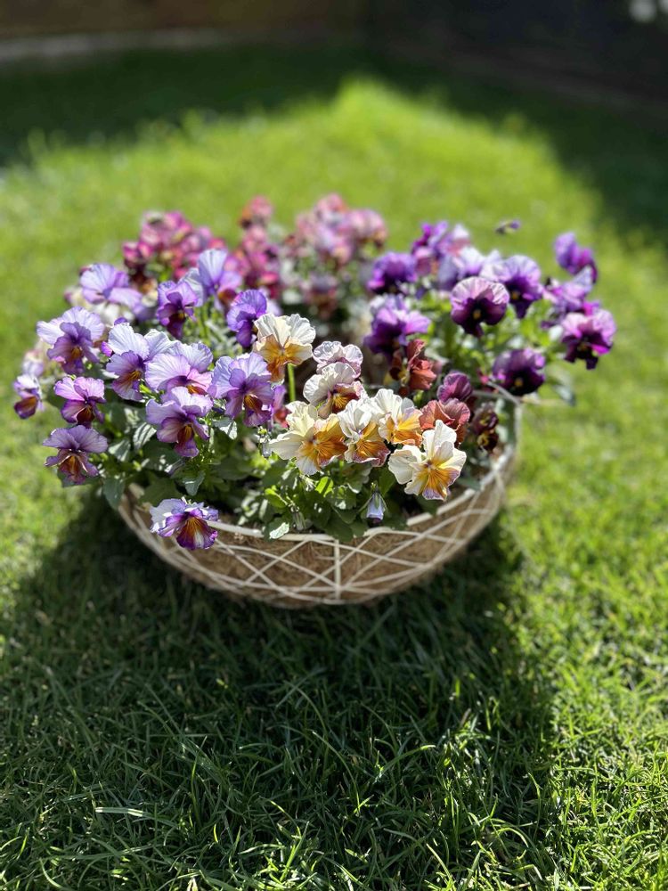 種からビオラのリースを平置きにして育ててます🌸🌸
