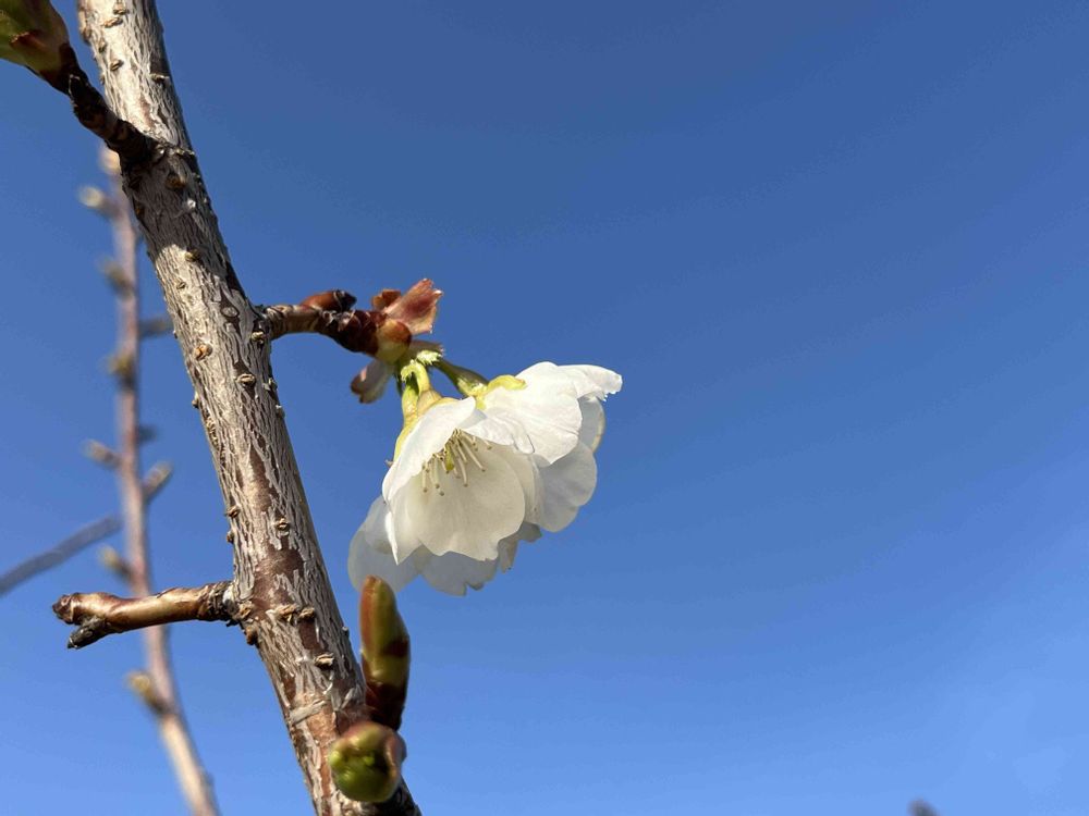 早咲きの大島桜。桜なのにお花に香りがあるね。桜餅用の葉っぱにする桜だって。