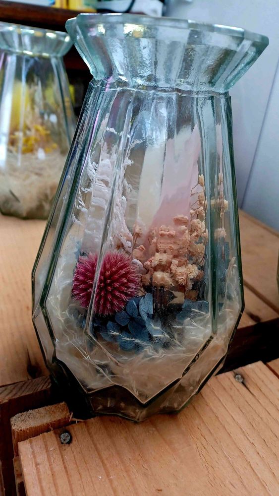 ドライフラワーもホコリ被らず楽しめ、使用していない花瓶も利用できました( * ॑꒳ ॑*)