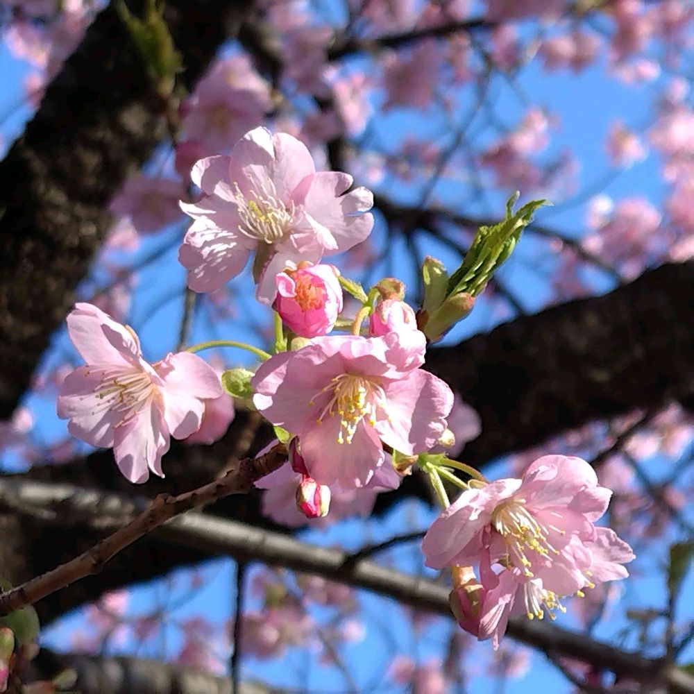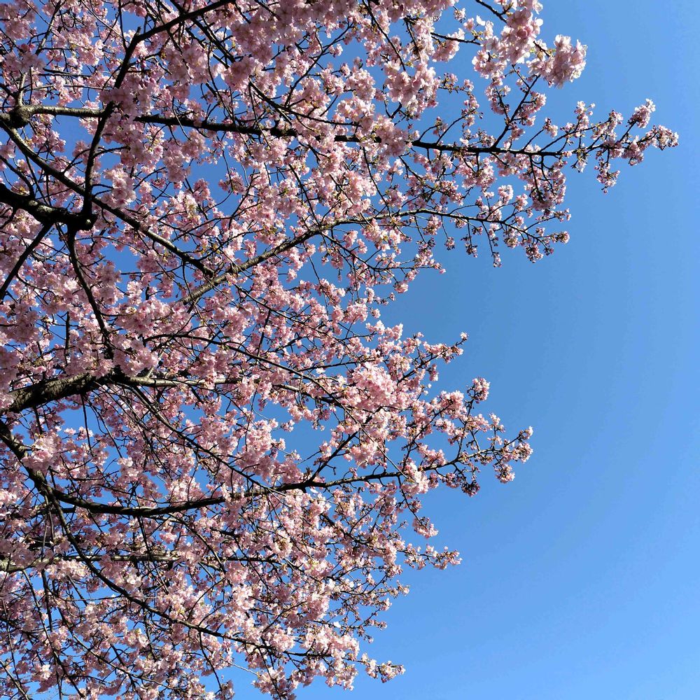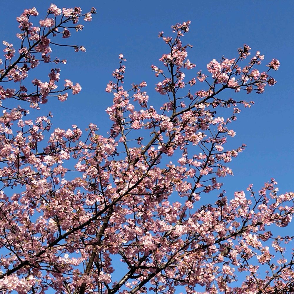 青い空に濃いピンク色の河津桜🌸がとても綺麗でした✨