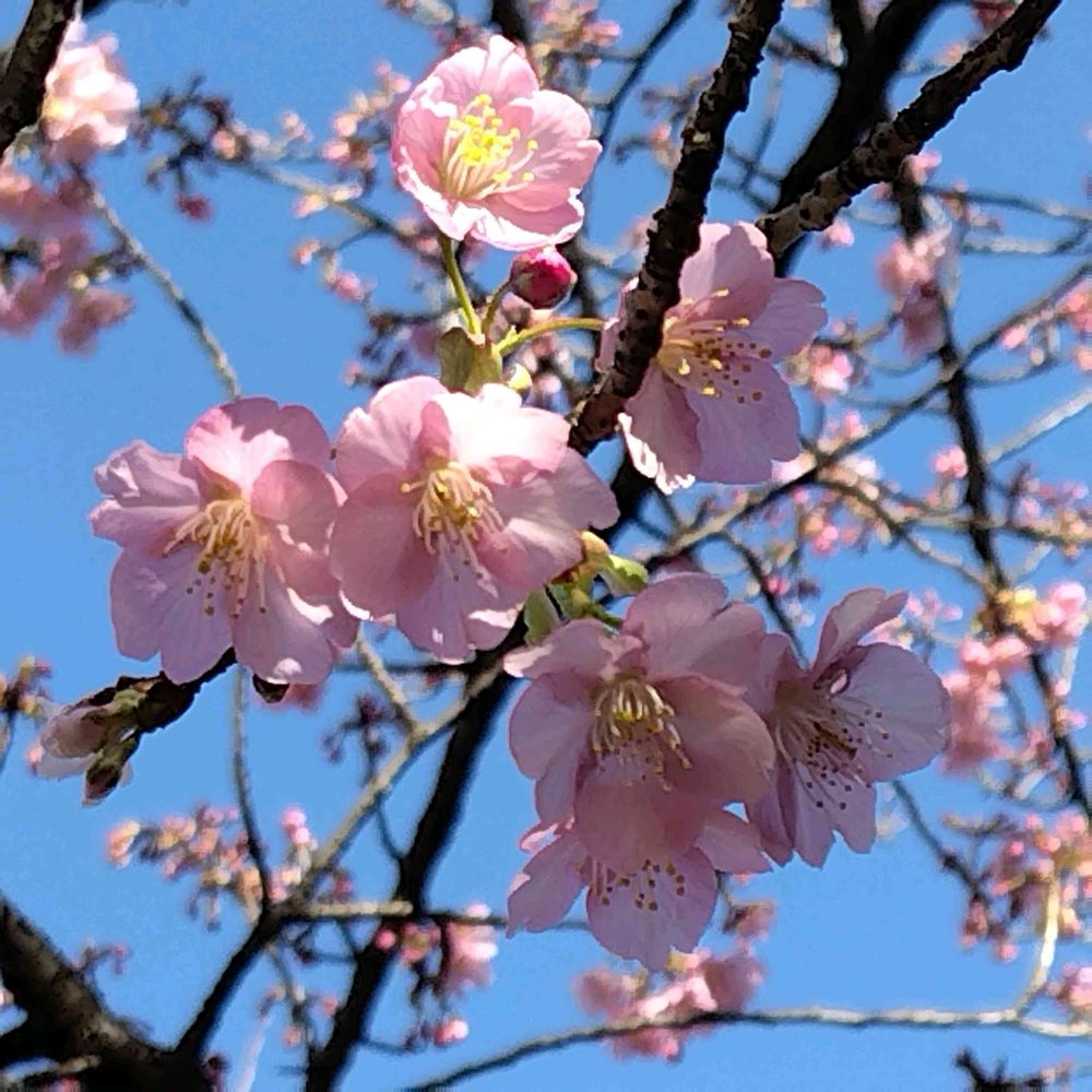 青空にピンク色の河津桜が映えて素敵ですね😊✨