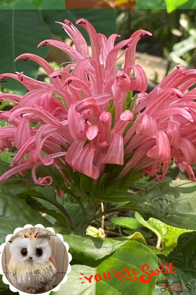 温室で咲いていたお花と29日なので木兎🦉がコラボ💕