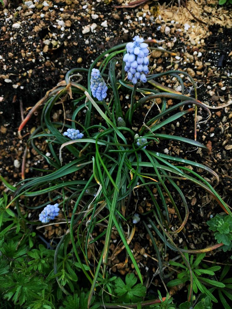 今年は本当にヒヤシンスがよく咲いてます。手前のピンクの子はずっと植えっぱなしなので花は少なめだけど安定感のある立ち姿でご新規さん達より好きです。去年まったく咲かなかった値下げのムスカリ、夏頃から葉っぱだけずっと出てたけど今年はたくさん咲いてくれるらしいです。